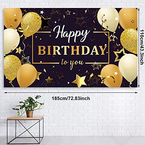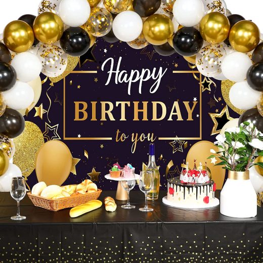 Party Decorations Set, Black and Gold Backdrop Banner, 2 Pieces Colored Rectangle Table Cloth Cover, 50 Pieces Latex Balloons for Birthday Holiday Party Supply (Birthday Themed Style)