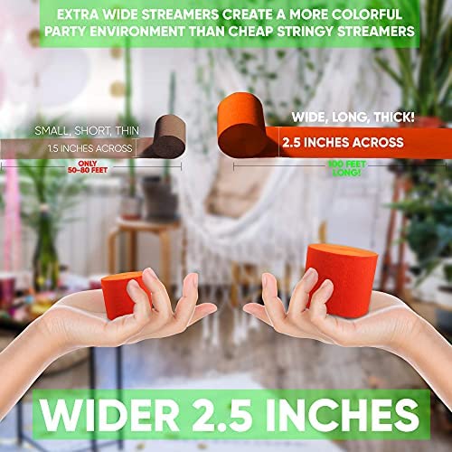 These streamers are thicker, wider and longer than the competitors. They are made using a durable crepe textile paper that is 2.5 inches wide x 100…