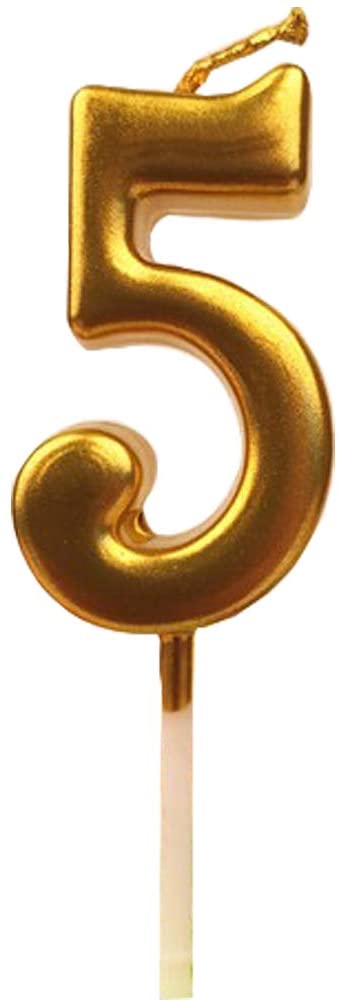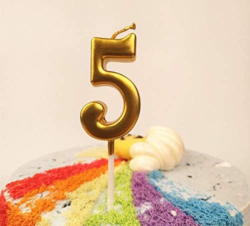 PartyMart Color Gold Material Paper, Wax Occasion Birthday Size Gold number 5 Special Feature Long Burning, Smokeless, Non Toxic Package Informatio…