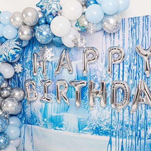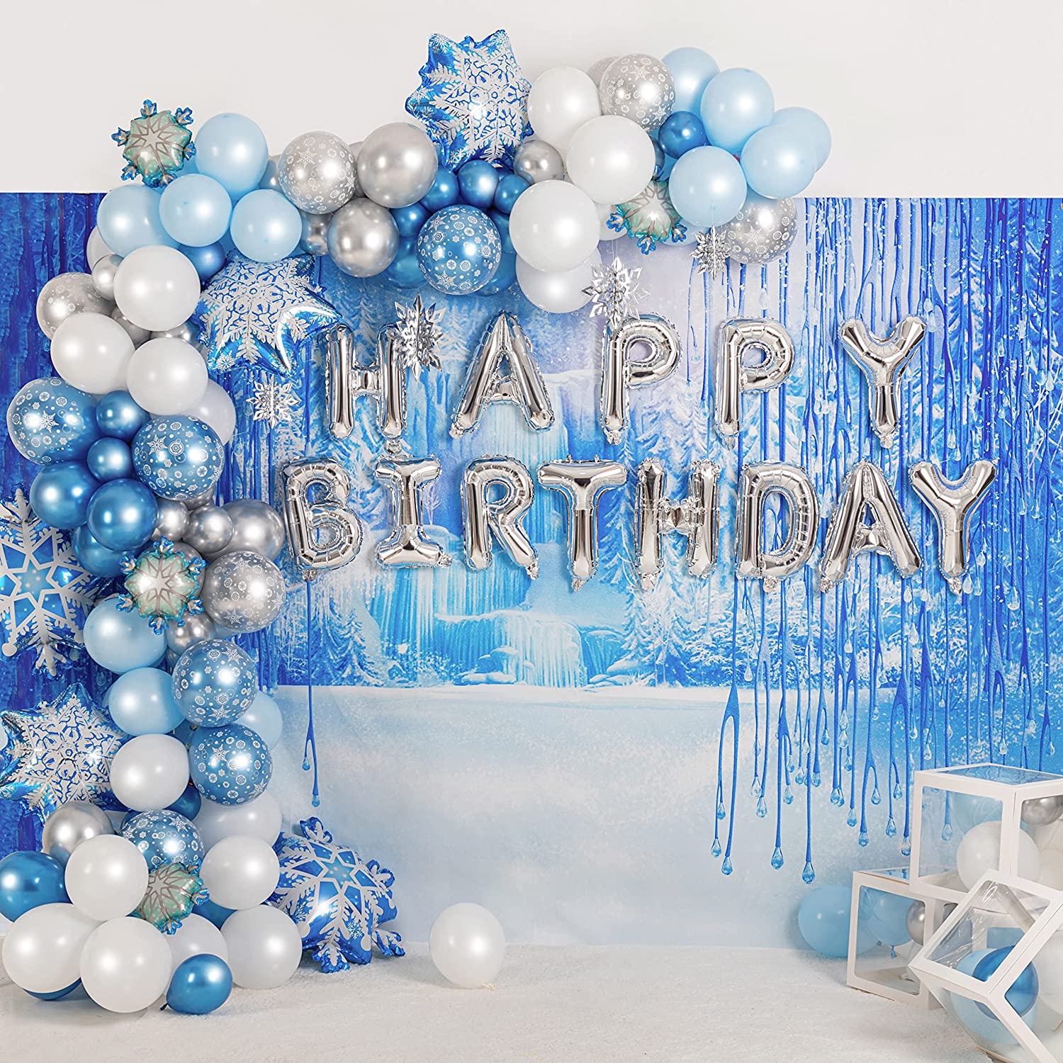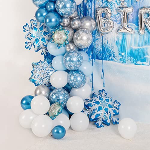PARTYNOW 149Pcs Ice Snow Frozen Theme Balloon Garland Arch Kit Double Layered Balloons Metallic Blue Snowflake Balloons for Birthday Party Baby Shower Wedding Decoration
