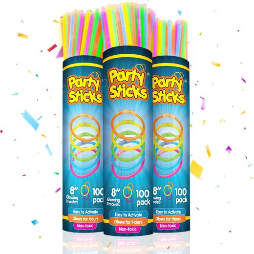 300 Glow Sticks Party Pack: Light up with 300 pieces of easy-to-activate and vibrant multi-colored light sticks plus 300 pieces of dependable connectors that stay put for hours Waterproof Floating Glow Sticks: Use these glow in the dark party favors as glow party decorations, or use in the pool or during bathtime; these waterproof glow party supplies float, are non leaking, and nontoxic Longer Lasting Glow Party Supplies: To activate these glow in the dark light sticks, simply snap and shake until completely lit; these 8-inch long glow in the dark sticks glow bright for 10-14 hours Kid-Safe and Quality Assured: These nontoxic and non leaking glow in the dark party favors are safe and fun for kids; We’ll provide a full refund if you’re not glowing bright with your glow sticks bulk party supplies Infinite Glow in the Dark Fun: Spice up your glow parties with these glow in the dark party decorations, pinata fillers, goodie bag stuffers, or use for pool parties, birthdays, carnivals, raves, concerts, weddings, camping, night fishing lights, and more