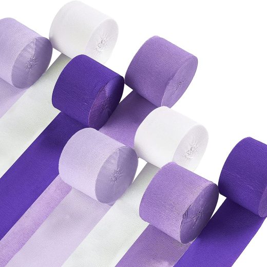 PACKAGE SPECIFICATIONS: The package includes dark purple crepe papers (2 rolls), purple streamers (2 rolls), light purple streamers (2 rolls), whit…