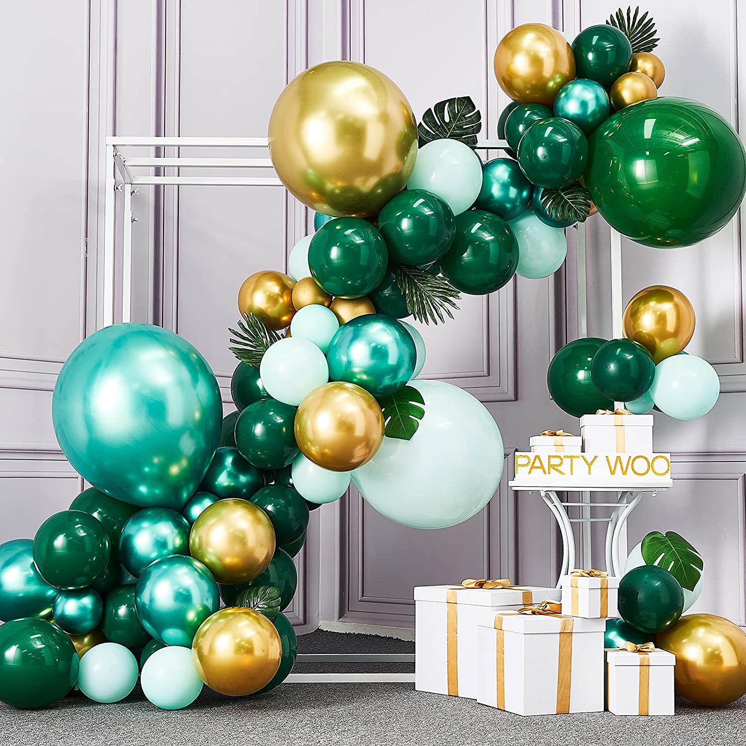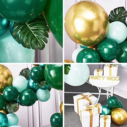 PartyWoo Green and Gold Balloon Garland Kit, 121 pcs Jungle Theme Party Supplies, Green Balloons, Metallic Gold Balloons, Tropical Leaves for Birthday Decorations, Baby Shower Decorations Neutral