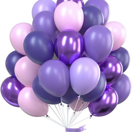 PartyWoo Purple Balloons, 70 Pcs 12 Inch Pastel Purple Balloons, Lilac Balloons, Violet Balloons, Purple Metallic Balloons for Purple Party Decorations, Purple Birthday Decorations, Purple Baby Shower