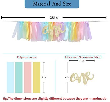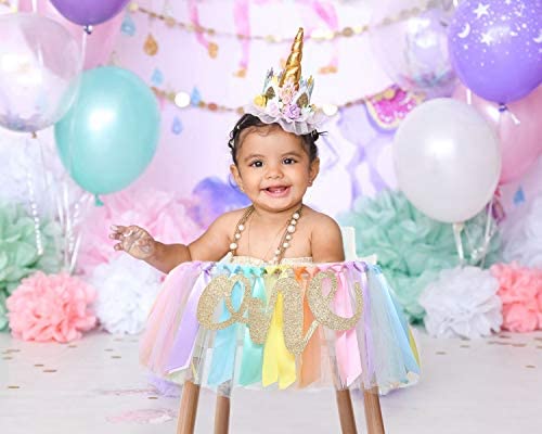 Pastel Rainbow High Chair Banner for 1st Birthday – Party Supplies for Highchair Tutu Skirt, First Birthday with One Pennant,Rainbow Birthday Decorations for Girls (Rainbow Banner)