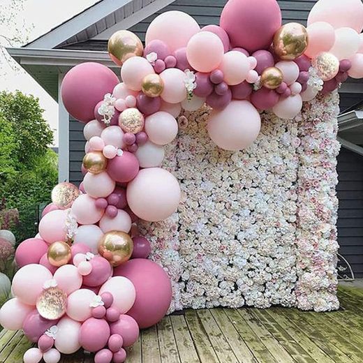 DUSTY ROSE BALLOONS GARLAND KIT, Total are 130 pcs. latex balloons 126 pcs: 18 retro rose red, light pink balloons; 12’’ gold chrome, gold confetti balloons; 10’’ double layer dusty rose, baby pink balloons; 5 pale pink, mauve balloons. Balloons accessories 4 pcs: balloons strip 1 pcs, adhesive tape 1 pcs, ribbon 1 pcs, paper instruction 1 pcs EASY TO SET UP, Use air to inflate rose pink balloon garland, insert the balloons lips into the decorative strip holes, hang the matte pink balloon garland kit on the wall or window, and fill the gaps with 5-inch balloons JOYFUL ATMOSPHERE MAKER, The rose gold balloon garland arch is suitable for birthday, baby shower, bridal shower, tea party, wedding, anniversary, bachelorette, photo backdrop LATEX THICKENED QUALITY, Our mauve balloon garland arch kit balloons are made of natural latex. Every balloons have been rigorously tested and selected manually, the color is full and not easy to pop, can support all-day parties AFTER-SALES SERVICE, If you are not satisfied with our retro rose balloon arch, please kindly keep in touch with us, we will solve your problem within 24 hours