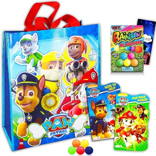 Paw Patrol Tote Bag Set Paw Patrol Party Supplies – 3 Pc Paw Patrol Party Favor Set with Paw Patrol Tote Bag, Paw Patrol Board Books, Bouncy Balls and More (Nickelodeon Paw Patrol Bag Set)