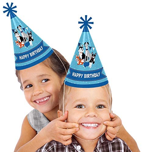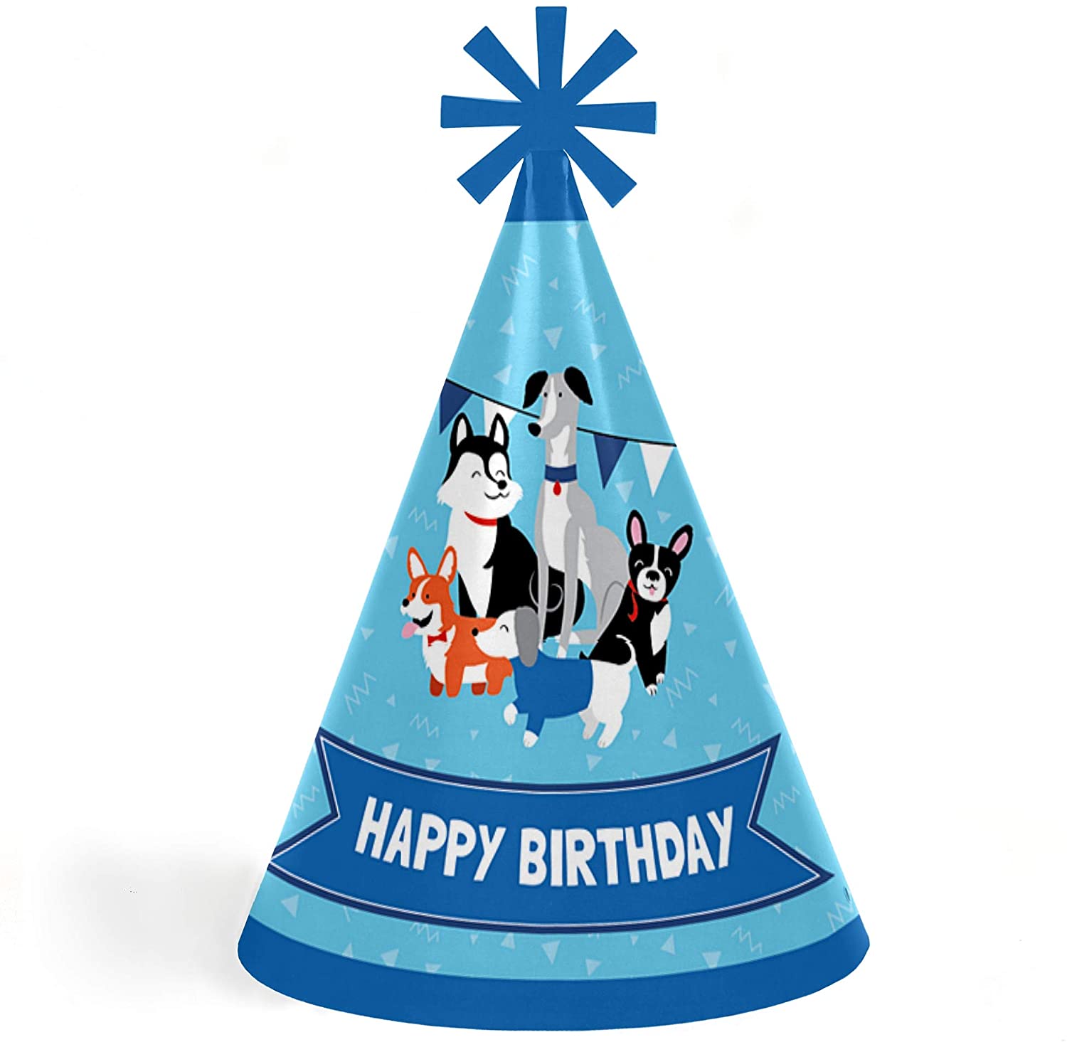 Pawty Like a – Cone Happy Puppy Birthday Party Hats for Kids and Adults Set of 8 Standard Size