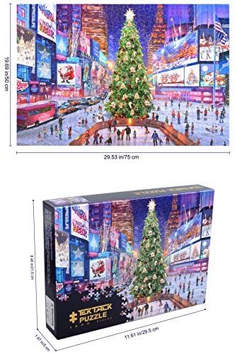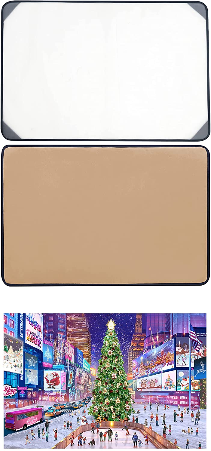 Pay Less to get More, 2 Items in a Set, Tektalk Jigsaw Puzzle Board with Dustproof Cover for Up to 1500 Pieces + Tektalk 1000 Piece Wooden Jigsaw Puzzle(Times Square in Christmas)