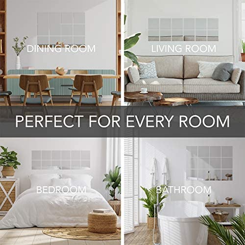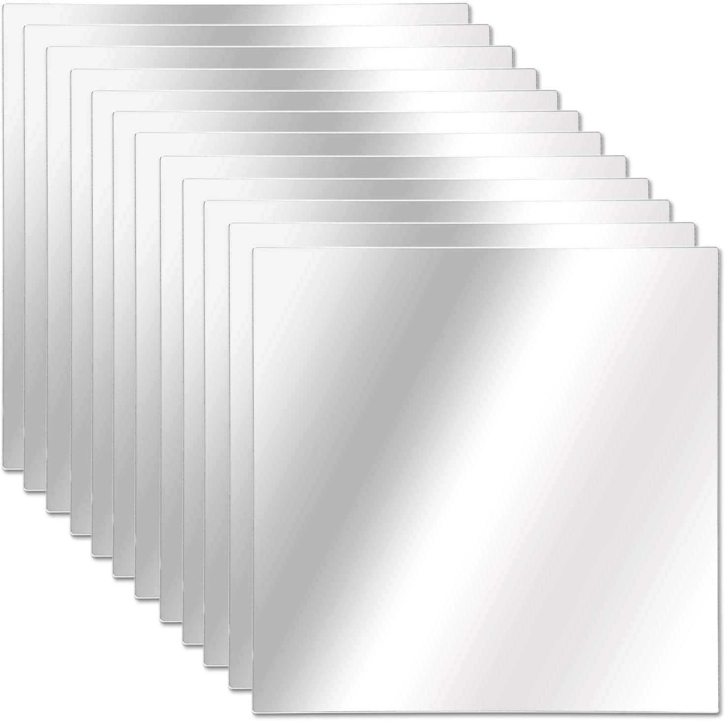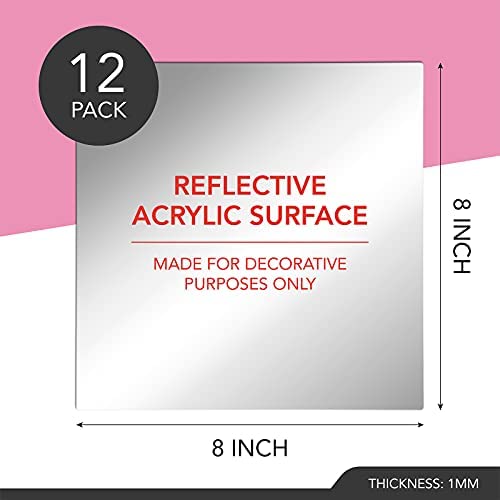 Peel and Stick Mirrors for Wall (12pk 8Inch x 8Inch x 1mm) Mirror Tiles Self Adhesive Mirror Sheet. Panel Stickers for Ceilings, Bedroom, Décor. Funhouse Style Plastic Stick On Mirrors, Not Real Glass