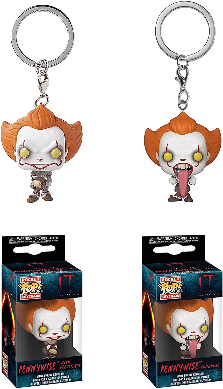 Pennywise IT Chapter Two Pocket POP! Keychain Vinyl Figures – Funhouse & Beaver Hat Twin Pack. 2 Pack as shown in image.
