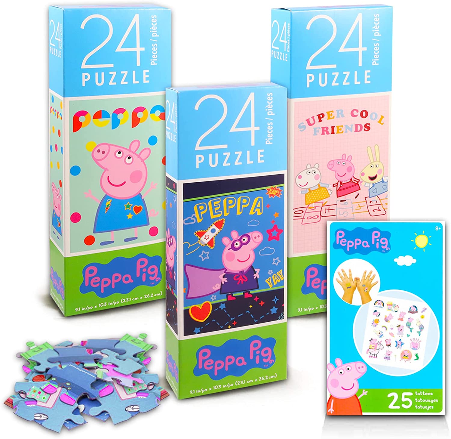 Peppa Pig Jigsaw Puzzle Assortment for Boys, Girls – Bundle with 3 Peppa Pig 24 Piece Puzzles Plus Peppa Pig Temporary Tattoos (Toddler Puzzles, Peppa Pig Activity Set)