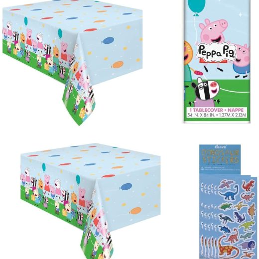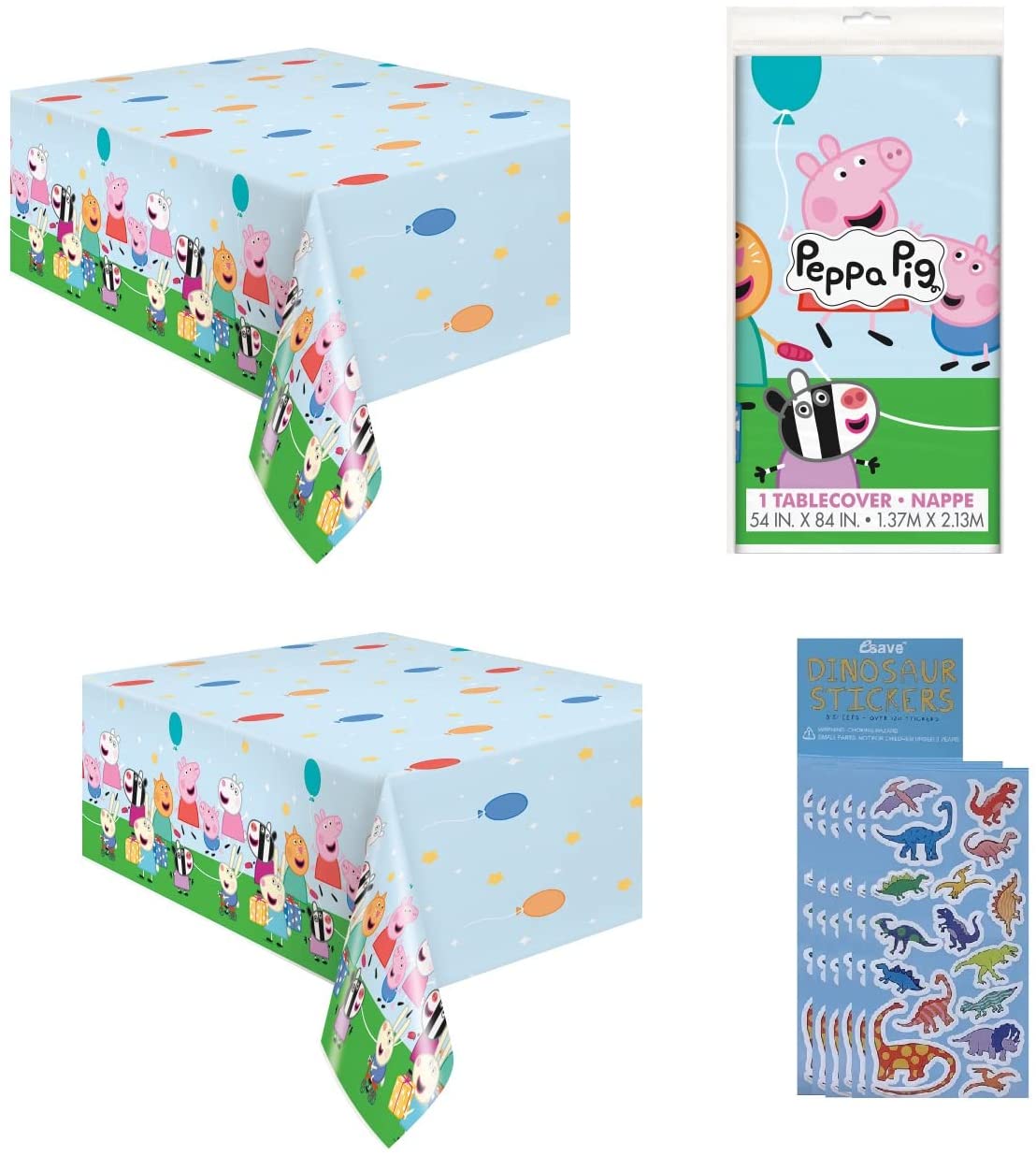 Peppa Pig Party Supplies Bundle Pack includes 2 Plastic Table Covers and 8 Dinosaur Sticker Sheets (Not Peppa Pig Stickers).
