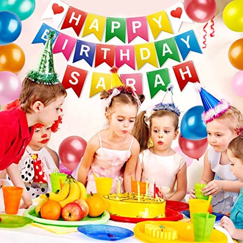Personalized Name Happy Birthday Banner, Rainbow Birthday Decorations with 2 Pack A-Z Letter 18 PCS Latex Balloons, Colorful Rainbow Party Decorations Photo Backdrops for Kids Boys Girls