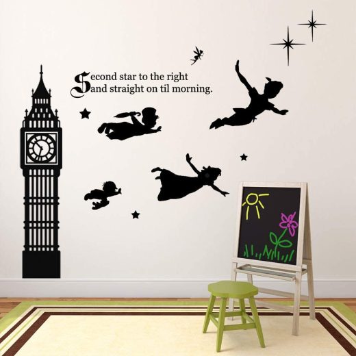 Be the first to review “Peter Pan, Wendy, John, Michael and Tinkerbell Scene | Vinyl Sticker Silhouette for Kids Playroom, Bedroom Or Nursery | Black Wall or Window Stickers” Cancel reply