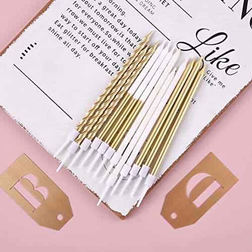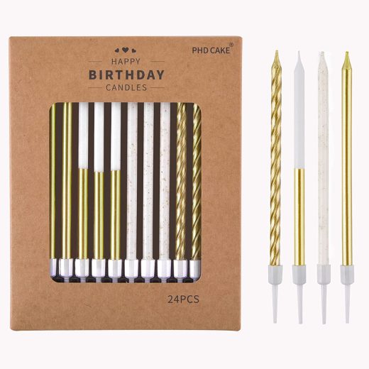 PHD CAKE 24-Count Gold, White & Spiral Long Thin Metallic Birthday Candles, Cake Candles, Party Candles