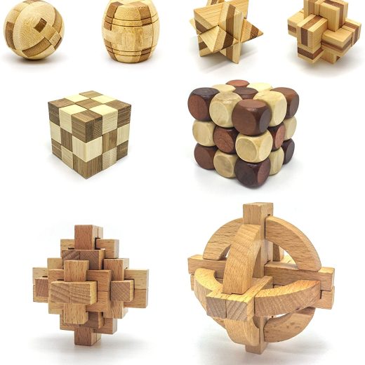 EASY STORAGE & PORTABILITY – This wooden burr interlocking logic skill genius puzzle sensory toy has 8 styles of brain teaser intellectual games. Assemble 3D cubes, balls barrels and other varieties of shapes with various high quality precisely cut wood puzzle pieces. Develop problem solving abilities, spatial imagination, creative thinking, hand-eye coordination, fine motor skills, teamwork, and social development by working with others to solve and take apart these challenging brain teasers. PERFECT FOR EVERYONE – Its not just for children but adults can enjoy and learn from solving the puzzles as well. This wooden burr puzzle provides a tough challenge for children ages 6 or older, teens, adults, family members, students, grandparents, and any puzzle enthusiast who want to enjoy brain stimulation, relieve stress, or even just relax. Entertaining for single or multiple parties to collaborate and provide great parent child bonding with hours of creative fun and brain stimulation. EIGHT UNIQUE BURR PUZZLES – Promotes children early education and intelligence by solving eight unique puzzle designs (Ball, Barrel, Globe, Star, and Snake Cube) that lock and click between wooden grooves and puzzle pieces which are sturdy and compact to make it easier to put away for storage and bring wherever you go. Each geometric puzzle has a distinct way of solving which stimulates and cultivates the cognitive and creative side of the brain which is essential for success in todays world. LEARNING BY PLAYING – Comes with 8 different puzzles to solve which introduce STEM (Science, Technology, Engineering, Math) learning and help improve childrens IQ intelligence and problem-solving ability. Provides hours of engaging intellectual fun and development perfect for kids or students in any social setting. Keep children away from video games and electronic devices by having them engaged and focused on solving each puzzle challenge while also developing a real sense of accomplishment! PERFECT GIFT – This 3D wood geometrical puzzle logic toy is a great present for birthdays, Christmas, or any other occasion. Perfect for boys, girls and children of any age who loves a complex challenge and a unique puzzle to boost early education and promote STEM learning. These puzzles provide brain busters, stimulate creative thinking, help pass time, and develop a healthier way to practice focus and concentration. A great gift to play as a fun party game to test logic and creative minds.