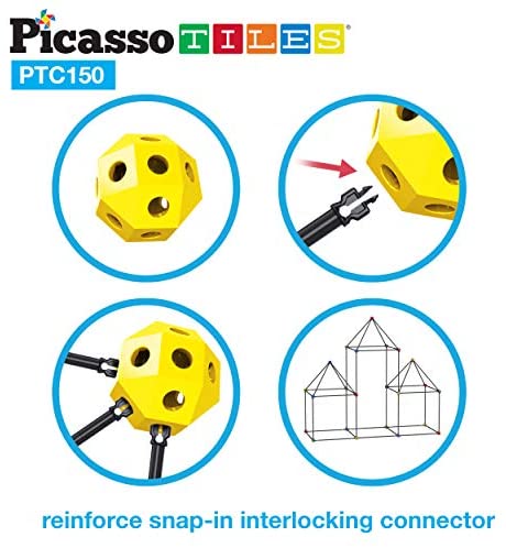 PicassoTiles Kids Fort Building Kit Playset 150 Piece Indoor and Outdoor Toy Set Forts Construction Builders Blocks Toys Children Boys Girls STEM Learning Castle System Tunnel Tent Rocket Pretend Play