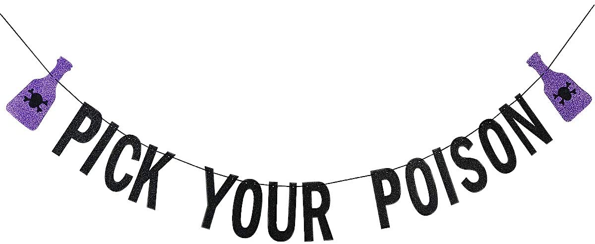 What you will get: 1Pcs Black Glittery Pick Your Poison Banner,Perfect for Halloween Party Decoration,Worth buying it!! Halloween Party Decorations…