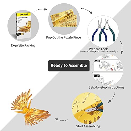 Piececool 3D Metal Puzzle for Adults, Lucky Crane Metal Model Kits, DIY Brain Teaser 3D Puzzles STEM Building Kit Anxiety Relief Toy, Great Birthday Gift, 66 Pcs