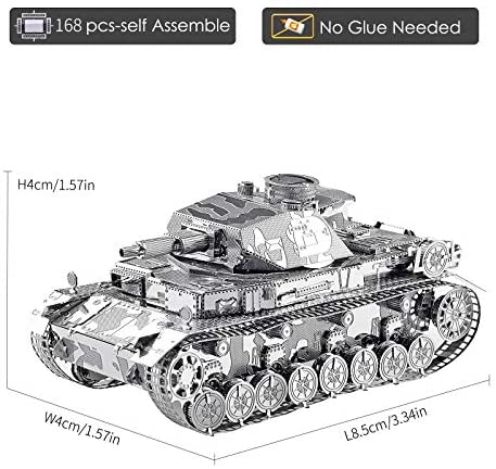 Piececool 3D Metal Puzzles for Adults, German IV Tank Metal Model Cars Kits to Build for Teens Students, DIY Military Model Kit Toys, Great Birthday Gifts, 168 Pcs
