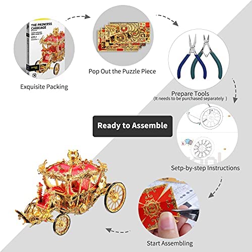 Piececool 3D Metal Puzzles for Adults, Princess Carriage Model Kits DIY Brain Teaser Puzzles 3D Metal Model Building Kits Anxiety Relief Toys, Great Birthday, 216 Pcs
