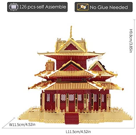 Piececool 3D Metal Puzzles for Adults, Watch Tower of Forbidden City Model Kits, Chinese Traditional Architecture Building Blocks Kits 3D Puzzle Anxiety Relief Toys Gift, 126 Pcs
