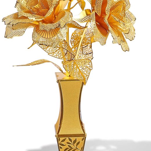 Piececool 3D Metal Puzzles Golden Rose Flower Model Kits, Artificial Fake Flowers Building Blocks Brain Teaser 3D Puzzle for Adults, DIY Crafts Toys Creative Gifts for Valentines Day New Year, 30Pcs