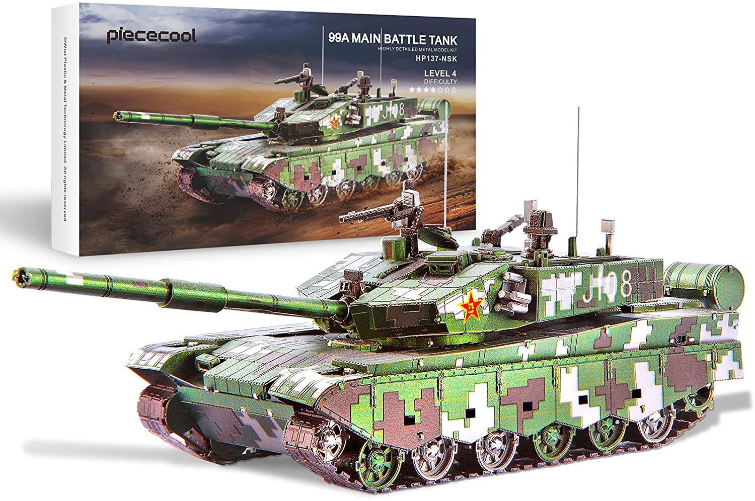 Piececool 3D Metal Puzzles Tank Model Kits, 99A Main Battle Tank Military Model kit, DIY Vehicle Car Models Building Blocks Kit, Handcraft Toys for Adults Christmas Birthday Gifts, 233Pcs