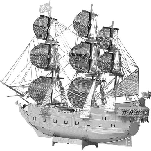 Piececool 3D Puzzle for Adults Metal Model Kits-Black Pearl Pirate Ship DIY 3D Metal Puzzles, Flying Dutchman Model Ship STEM Building Kit Puzzle Toy, Great Birthday Gift Idea-49 Pcs