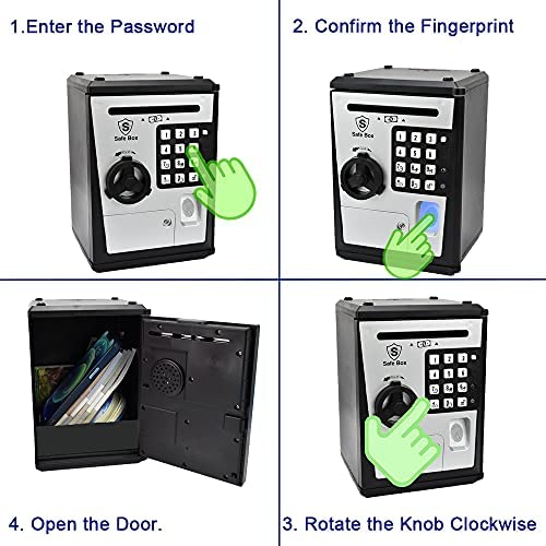 1.Electronic Password Piggy Bank: Open the Piggy Bank Requires A 4-Digit Password + Fingerprint Confirmation, The Password Can Be Set by Yourself, …