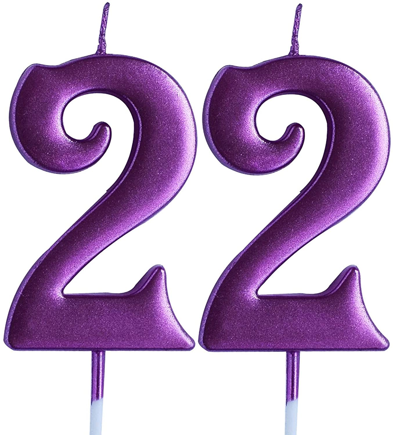 Pink 22nd Birthday Candle, Number 22 Years Old Candles Cake Topper, Girl Party Decorations, Supplies