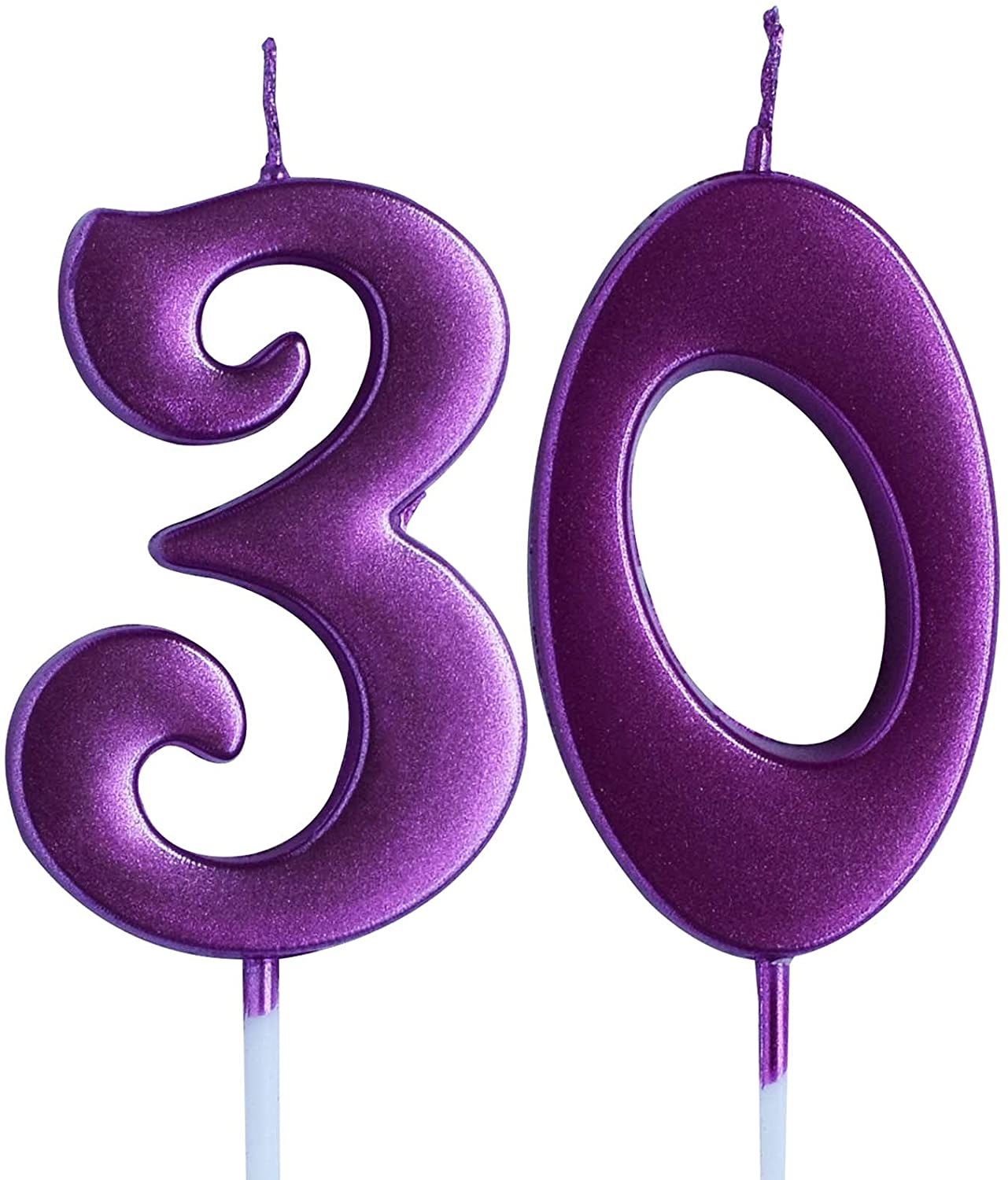 Pink 30th Birthday Candle, Number 30 Years Old Candles Cake Topper, Woman Party Decorations, Supplies