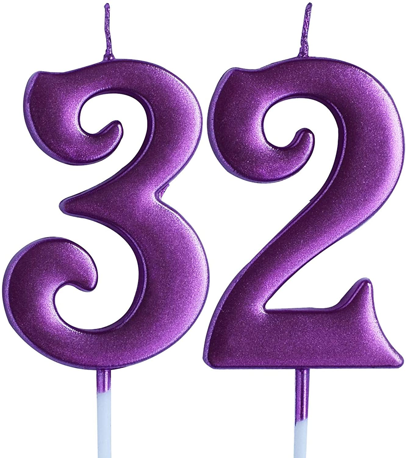 Pink 32nd Birthday Candle, Number 32 Years Old Candles Cake Topper, Woman Party Decorations, Supplies