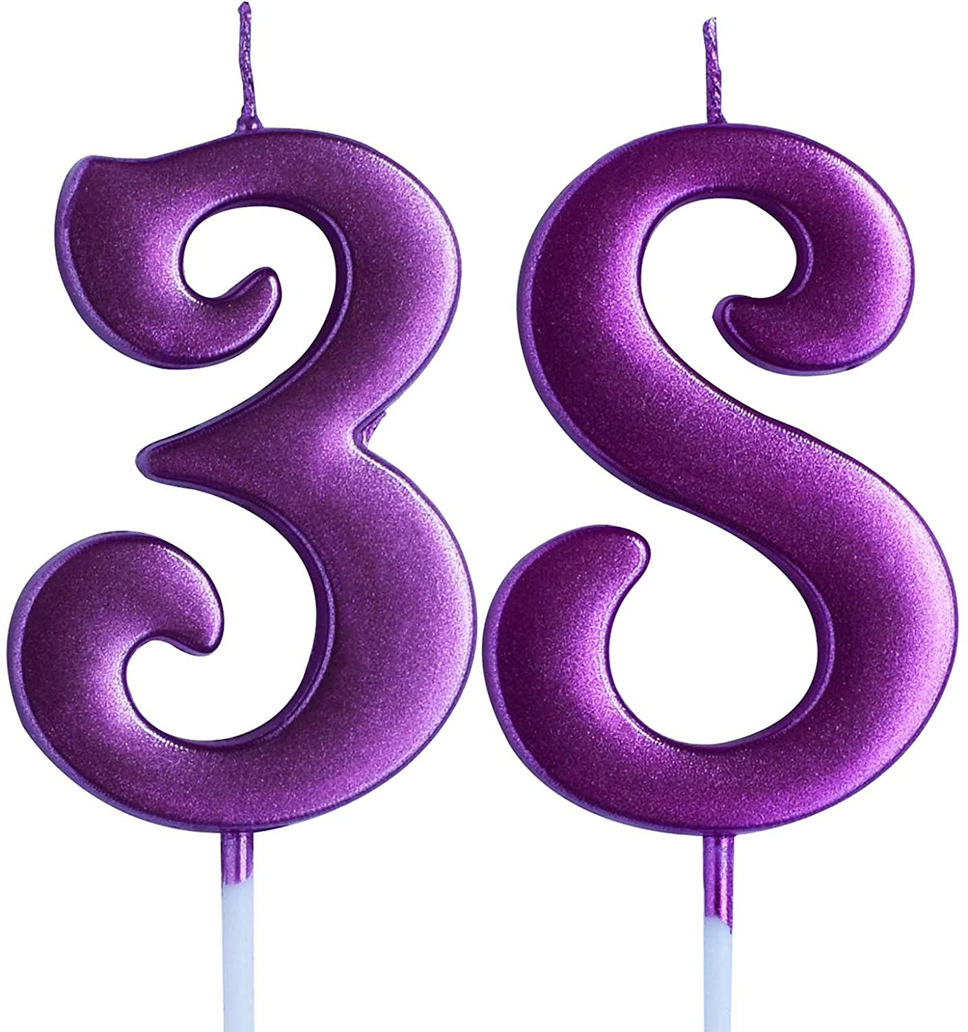 Pink 38th Birthday Candle, Number 38 Years Old Candles Cake Topper, Woman Party Decorations, Supplies