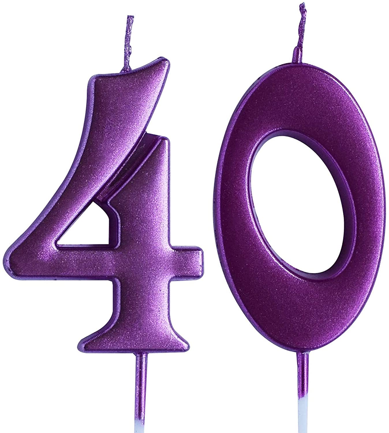 Pink 40th Birthday Candle, Number 40 Years Old Candles Cake Topper, Woman Party Decorations, Supplies