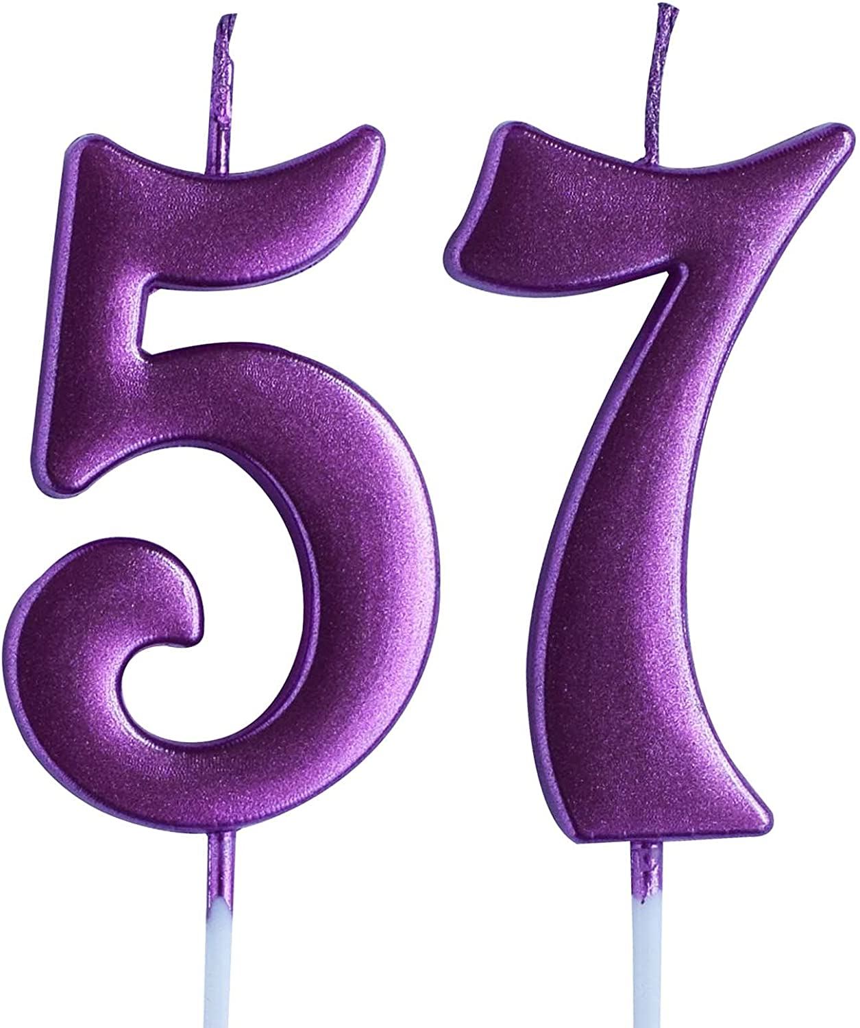 Pink 57th Birthday Candle, Number 57 Years Old Candles Cake Topper, Woman Party Decorations, Supplies