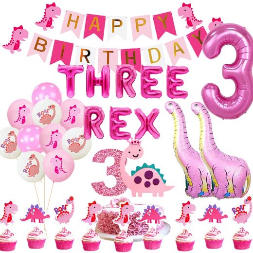 Be the first to review “Pink Dinosaur Party Supplies For Girls 3rd Birthday Decorations Pink Three Rex Dinosaur Balloons Banner Dino Cake Topper Cupcake Toppers Girls 3rd Pink Dinosaur Decor” Cancel reply