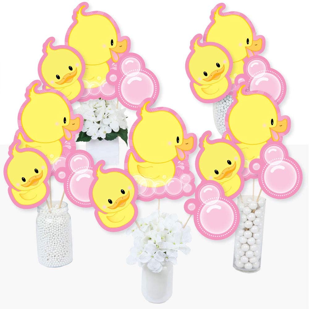 Pink Ducky Duck Centerpiece Sticks INCLUDES 15 girl duck table toppers in three different shapes, 15 wooden dowel sticks and stickers for easy asse…