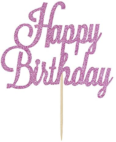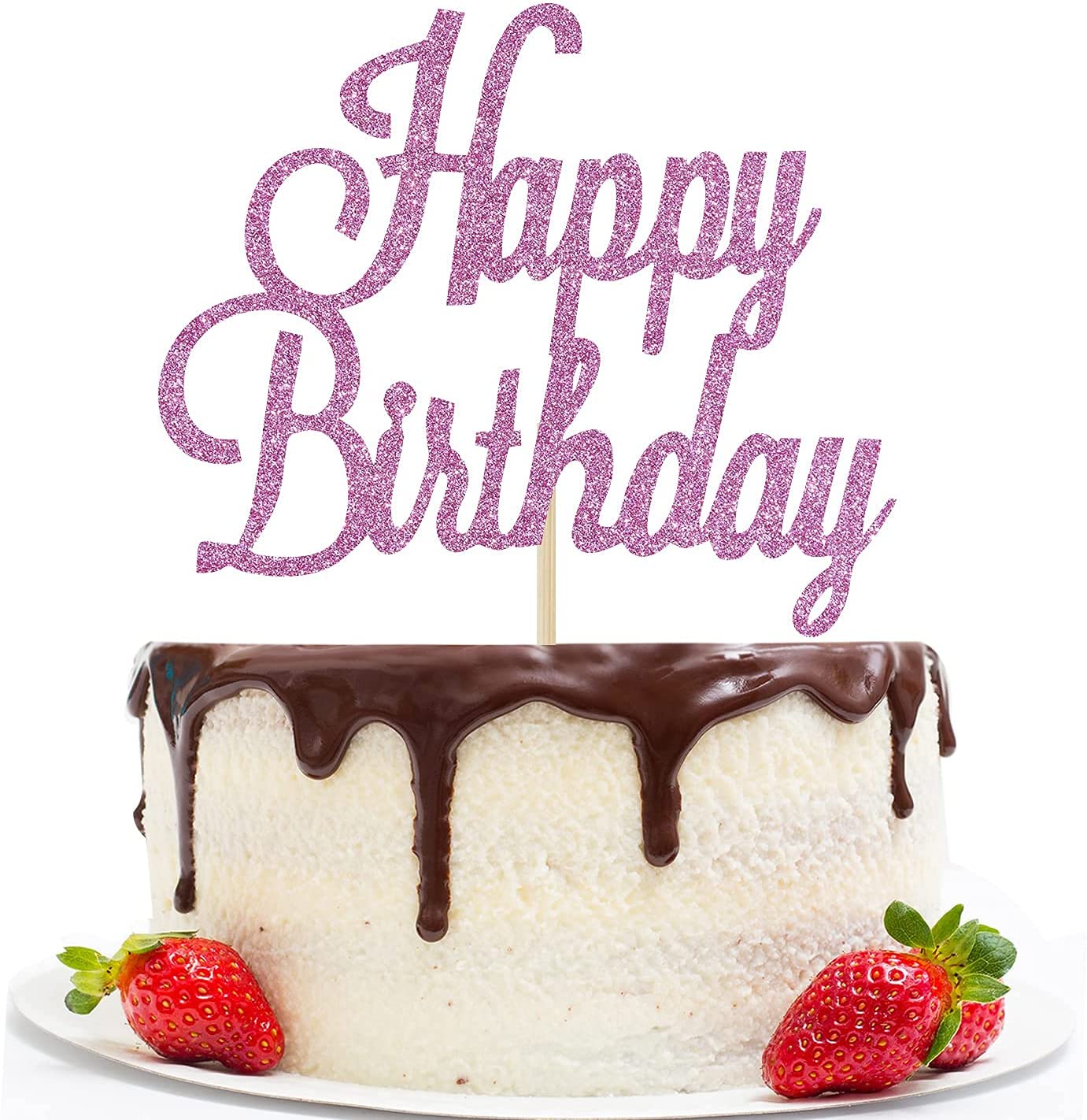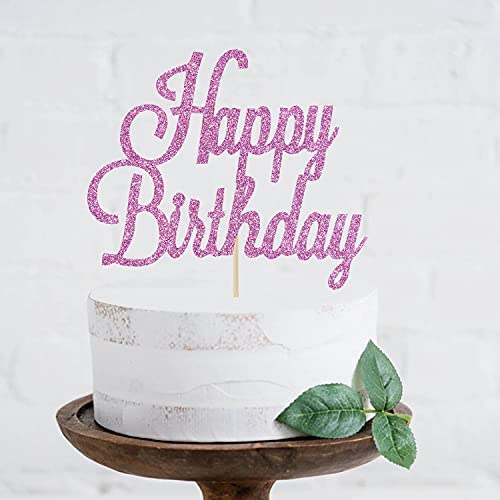 Pink Glitter Happy Birthday Cake Topper, Birthday Party Decorations Supplies