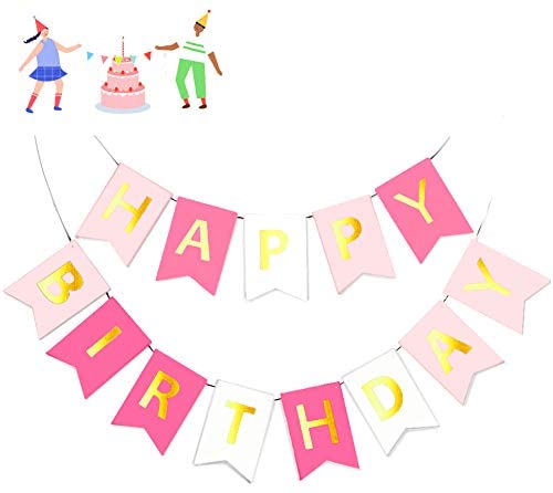 Pink Happy Birthday Banner with Shiny Gold Letters Birthday, Party Decorations,Girls Party Supplies, Kids Birthday Party Decor, Birthday Decorations