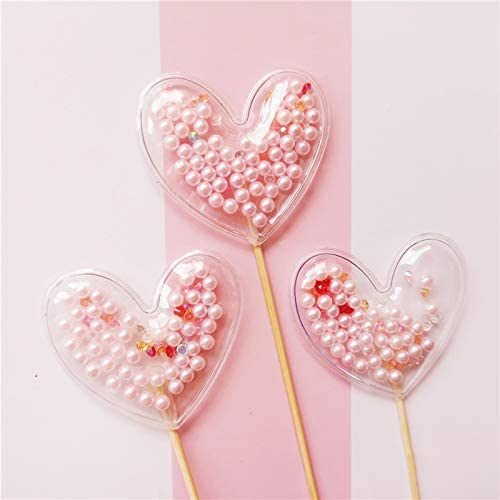 Pink Heart Happy Birthday Cake Topper, Restards Set of 5 Lovely Heart Cake Toppers Pink Party Decoration for Birthday Party Baby Shower Supplies