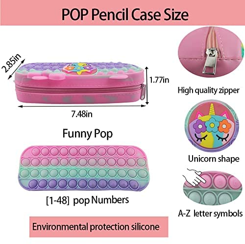 Pink Pop Backpack for Girls, Unicorn Pop Pencil Case,2 Pack Pop Purse Fidget Toys, Pop School Supplies for Children Stress Relief, Great Gift for Birthday Party and Childrens Rewards.