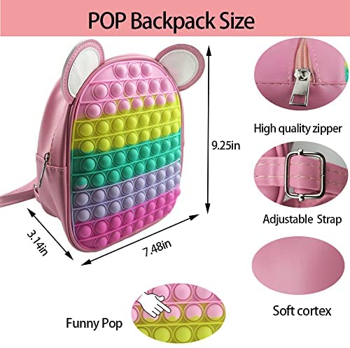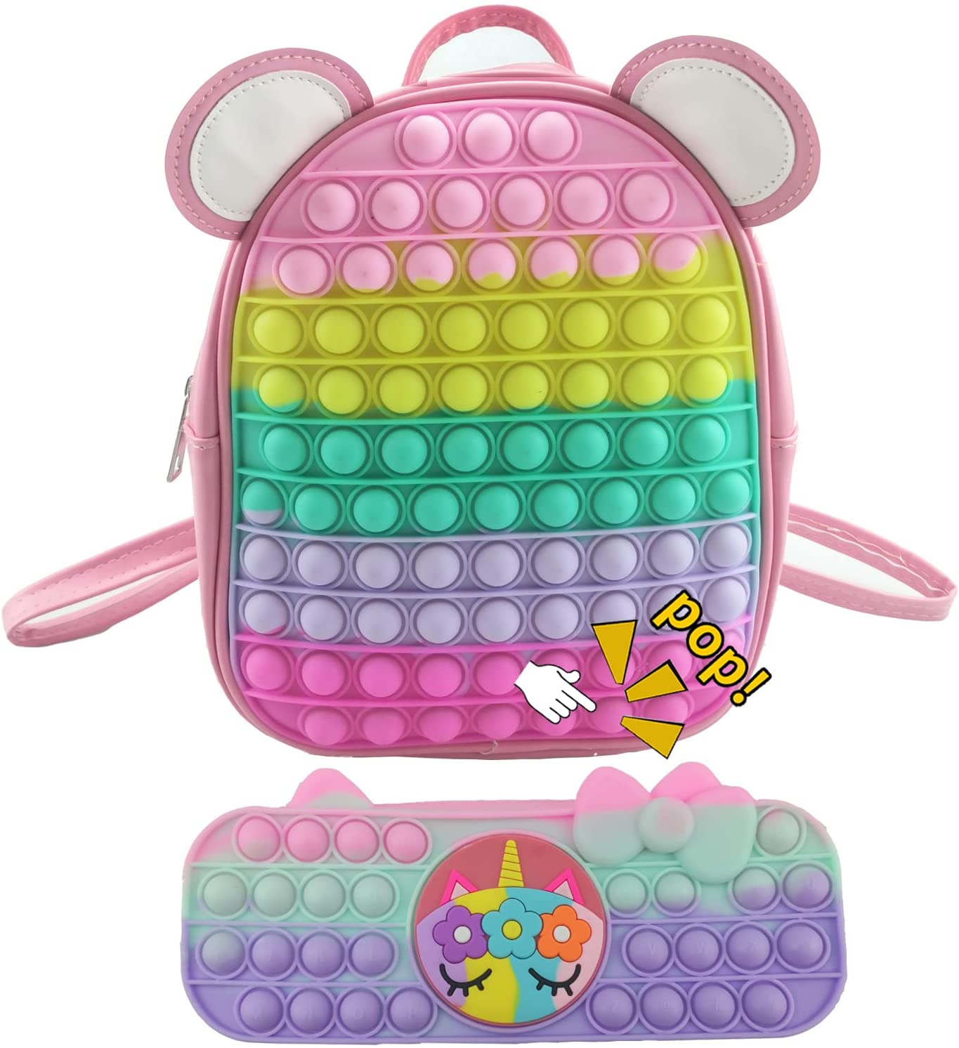 Amazing GiftsThe Package contains 2Pack Fidget toys. pop Bear backpack for Girls, unicorn shape Pop Pencil Case. Amazing Gifts for Kids and Student.