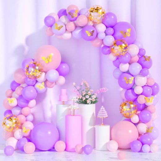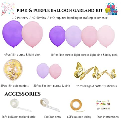 Pink Purple Balloons Arch Kit 115 Pink Purple Lavender Latex Balloons Confetti Balloons Butterfly Decor Balloon Garland Strip for Princess Baby Shower Birthday Wedding Decorations Purple Pink Party Supplies