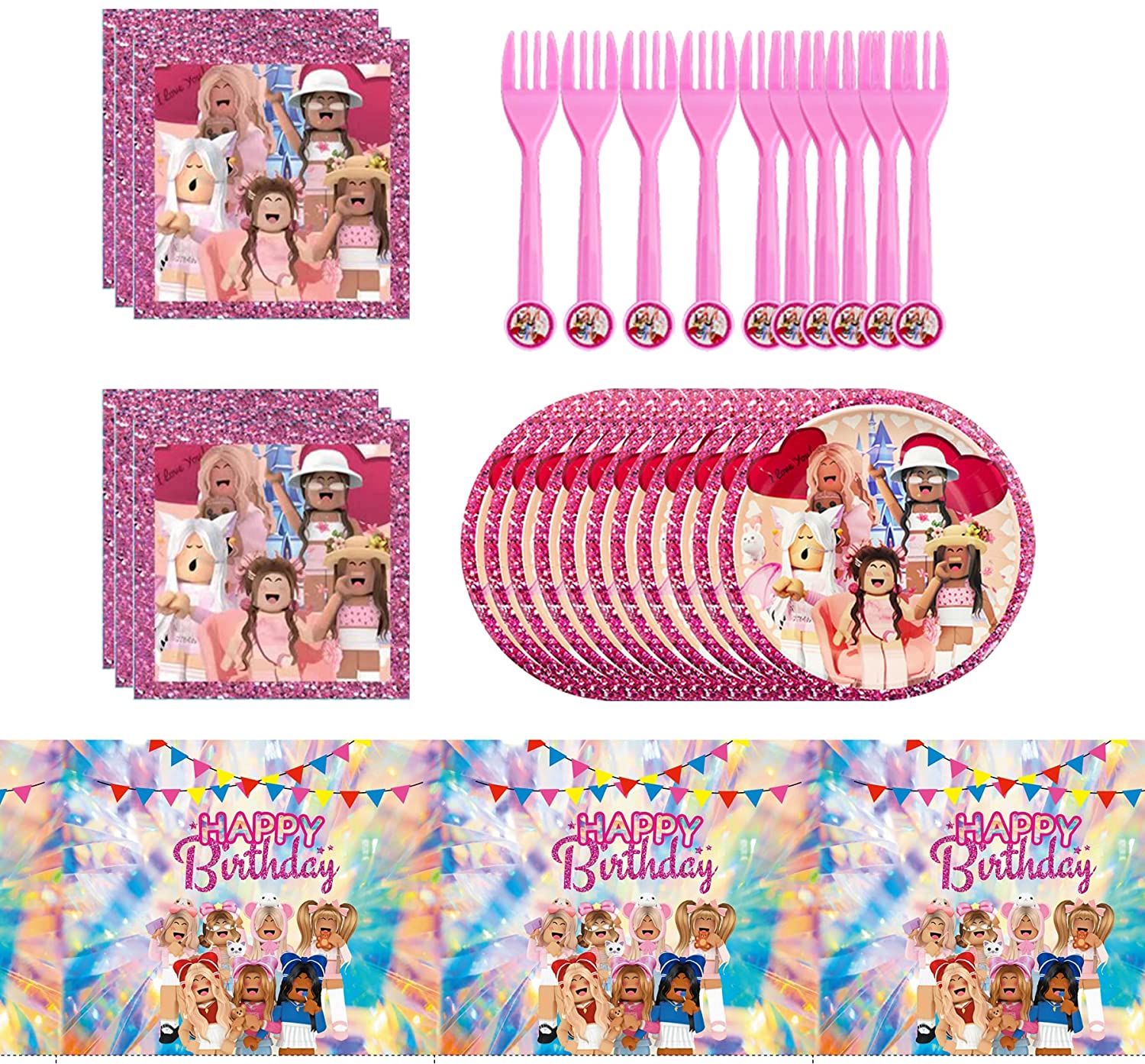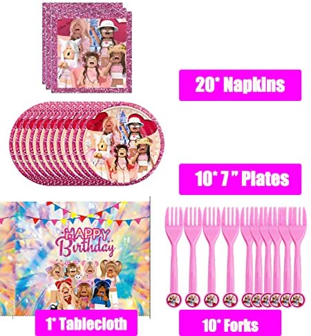 Pink Video Game Birthday Party Supplies, Birthday Party Decorations Perfect set includes Flatware, Fork, Plates, Table Covers, Napkins for Kids Girls Boys