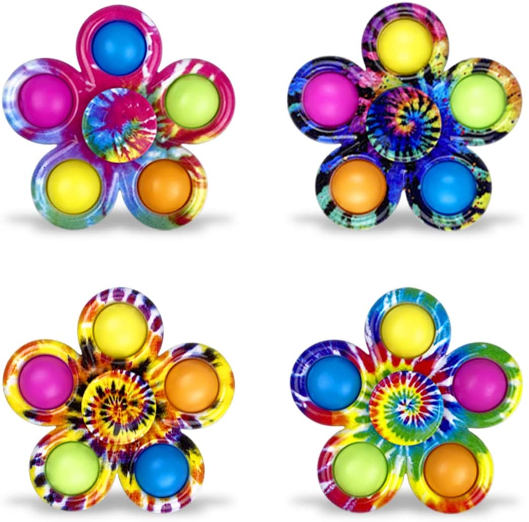 Pinkiwine 4 Pack Flower Rotating Simple Fidget Toys Features: 1. Press the bubble to hear the pop, perfect fidget toy, small and easy to carry around can always take it out and play to relieve stress 2. You can rotate it like a spinner, also press it like a pop, flower shape, beautiful simple fidget toys 3. Not big or small, and with bright color, also a novelty toy, very suitable as Christmas gifts for kids boys girls stocking stuffers 4. Made of silicone, its durable, non-toxic, safe for everyone to play, just have a fun Specification: Styles: flower shape Size: 3.1 (7.8cm) Materials: Silicone