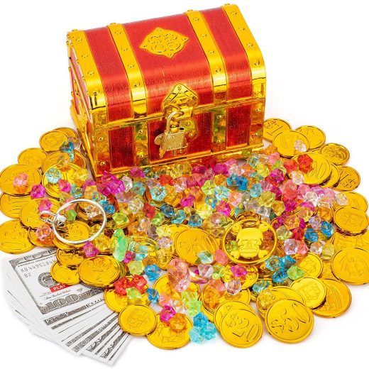 High-quality, safe and healthy toys. The treasure chest set is made of ABS material, and the surface adopts advanced electroplating technology. The…