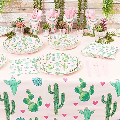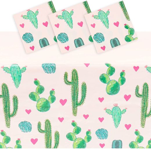 Plastic Cactus Tablecloth for Lets Fiesta Birthday Party Decorations (Pink, 54×108 in, 3 Pack)