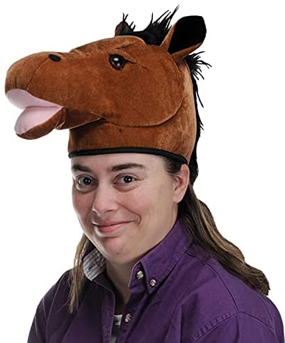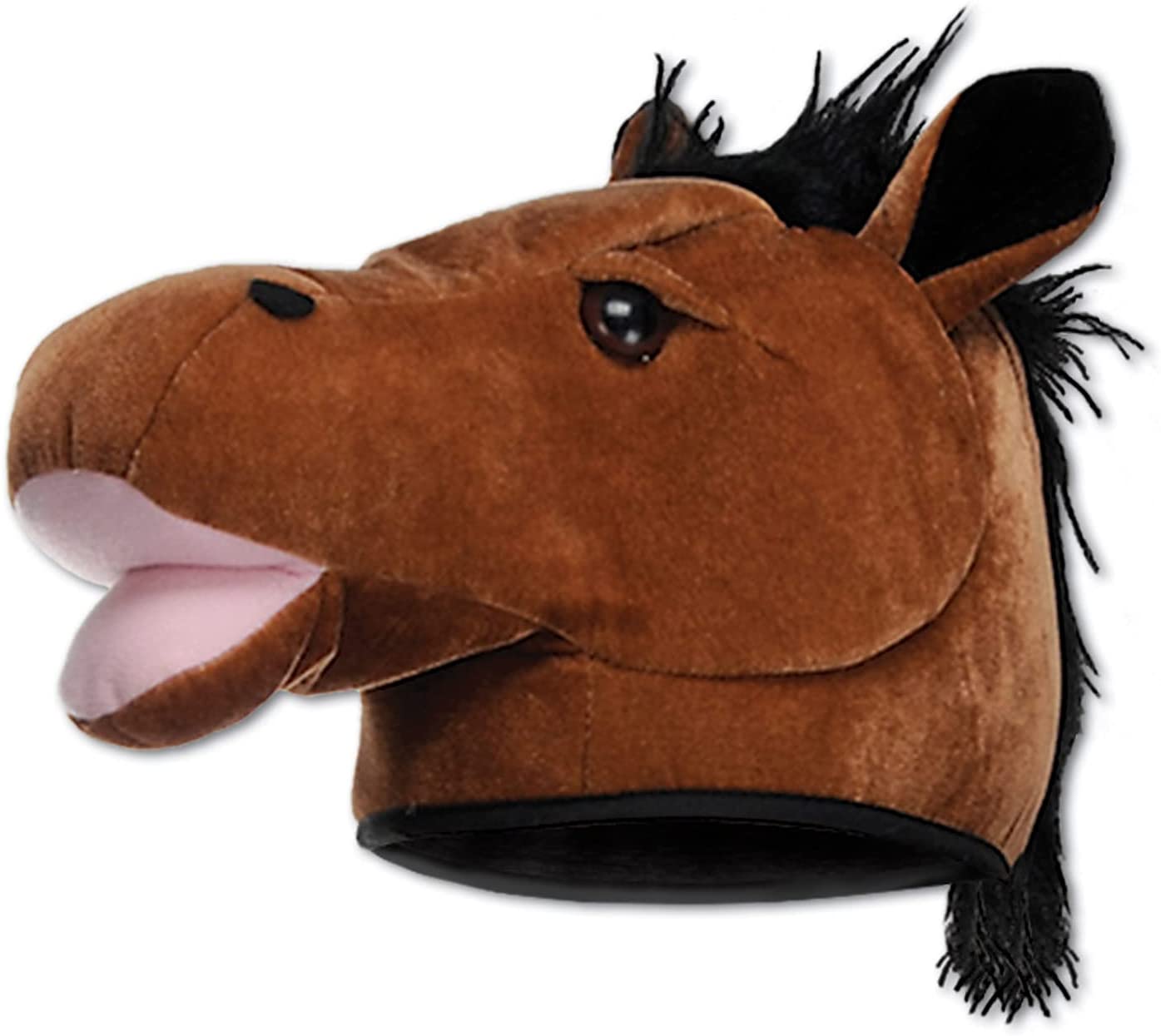 Beistle 60918 Plush Horse Head Hat. Be the head and not the tail at your next party with this one size fits most adorable plush brown and black horse head hat.